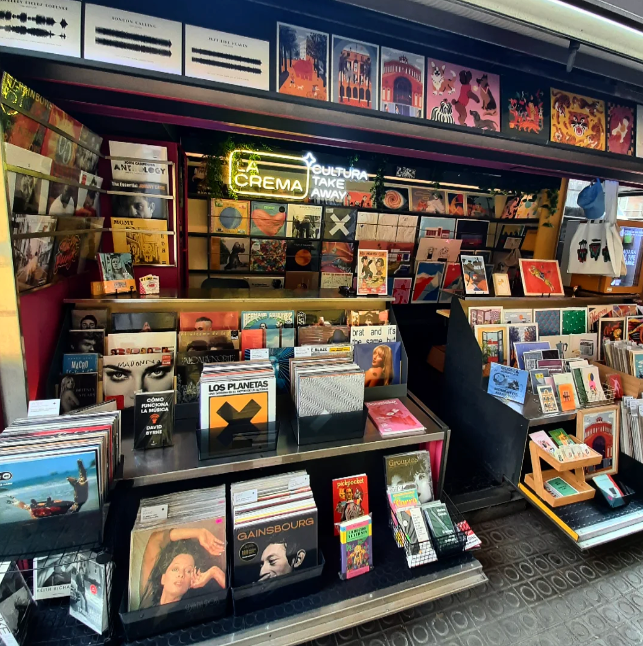 La Crema es el primer kiosco de vinilos y obra gráfica de Barcelona. Y después montamos la primera tienda a partir de un kiosco de vinilos de Barcelona. Y ahora hemos hecho la primera página web de un kiosco de vinilos con tienda. Somos Edu y tratando de acercar a la gente una cuidada selección de música, diseño y arte local. ¡Os esperamos en el barrio de Sant Antoni de Barcelona!